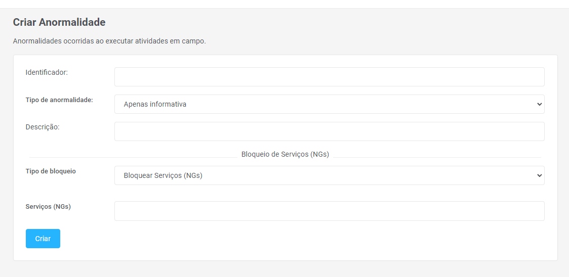 Para criar uma nova anormalidade, siga os passos abaixo:
