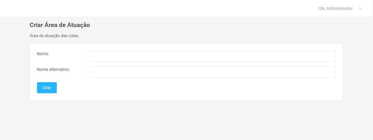 1º Passo: Acesse o menu lateral "Área de Atuação" e clique em "Criar novo".