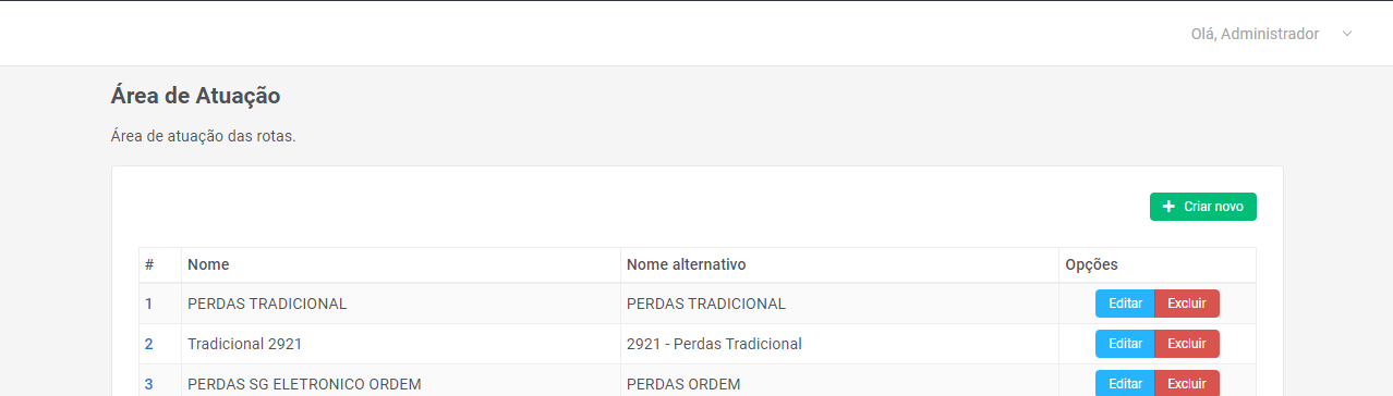 Para criar uma nova área de atuação no sistema 3C Perdas, siga os passos abaixo: