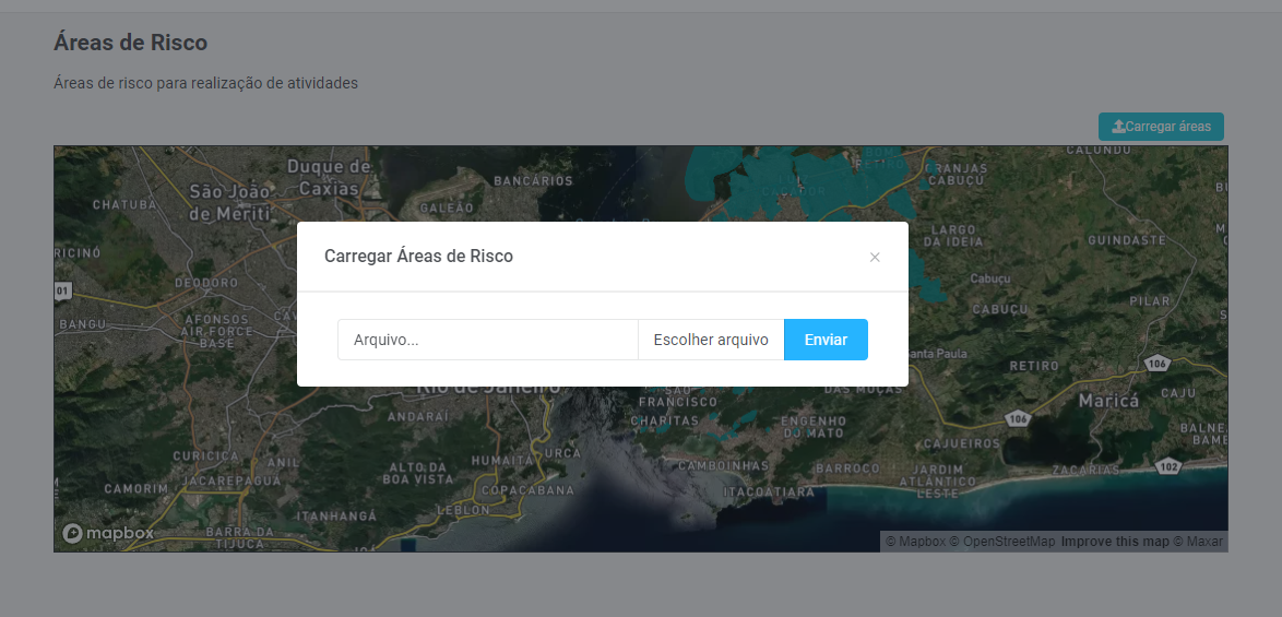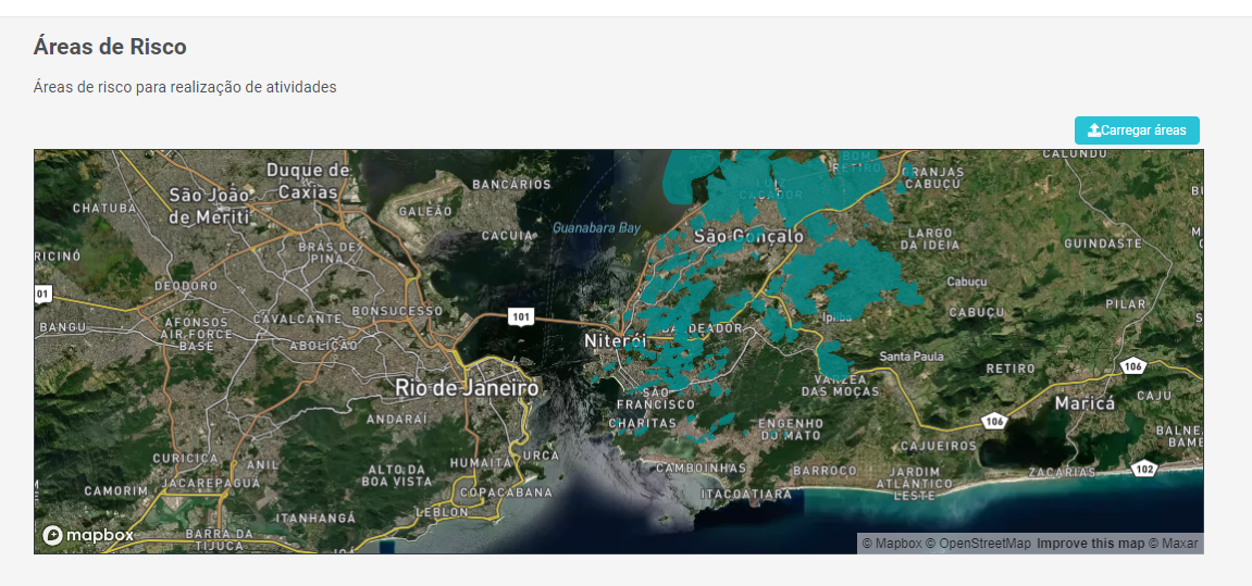 Para acessar a pagina acesse o menu Áreas de Risco no canto esquerdo do sistema.