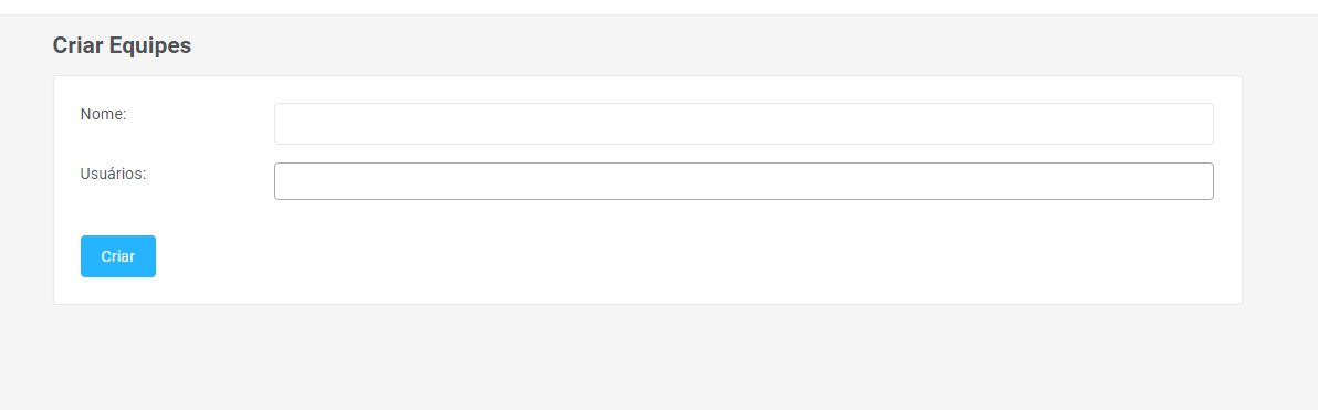 O sistema irá redirecioná-lo para o formulário de criação de equipes, onde você deverá preencher os campos necessários.