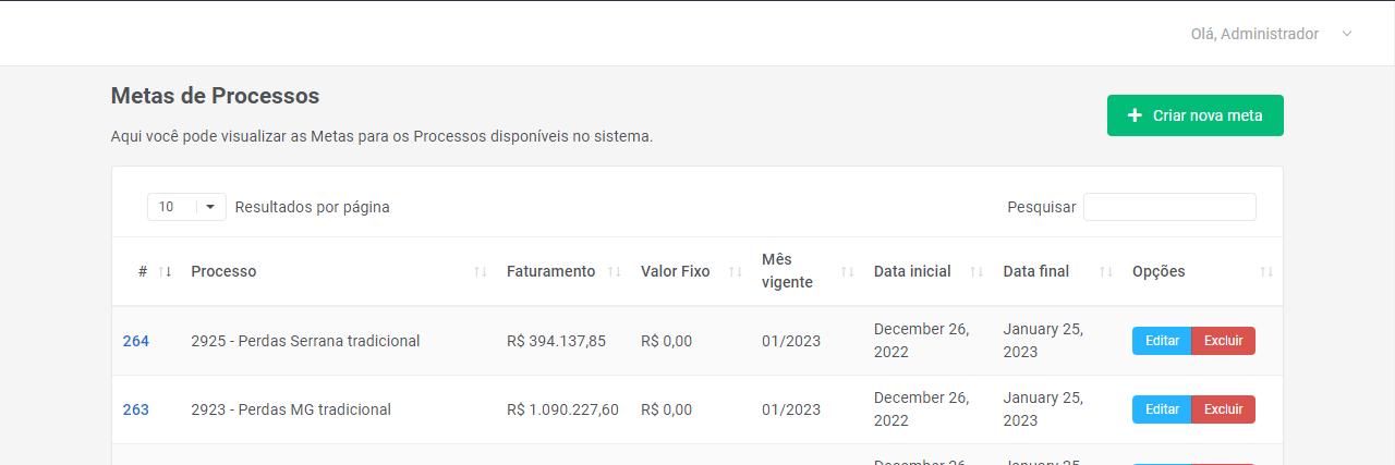 Aqui você encontra todas as funcionalidades do módulo de Metas de Faturamentos