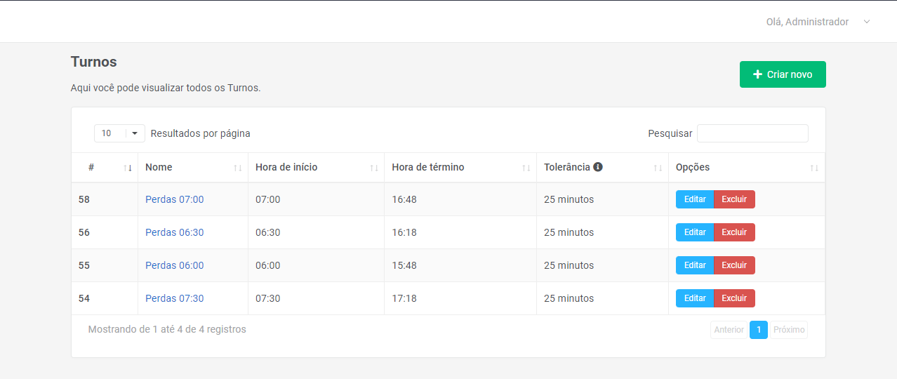 Aqui você encontra todas as funcionalidades do módulo de Turnos