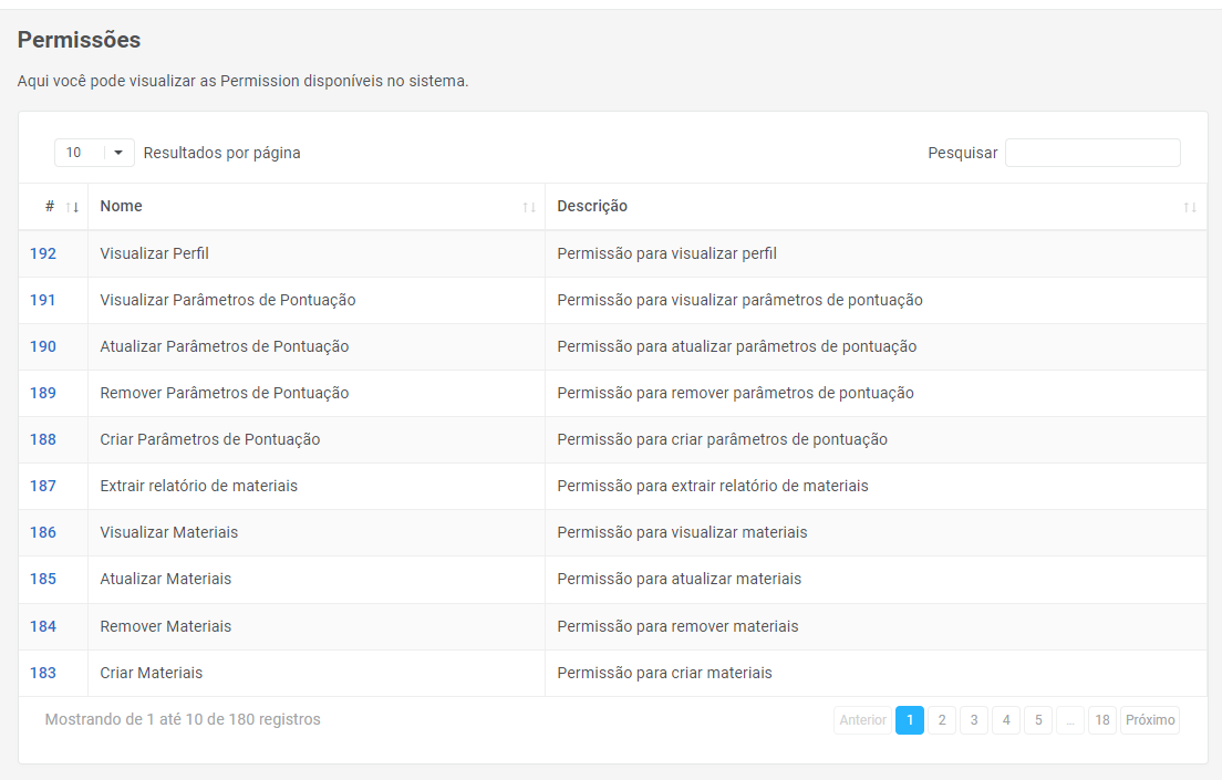 Você pode ter acesso a todas permissões disponiveis no sistema clicando em "Acesso" -> "Permissões"