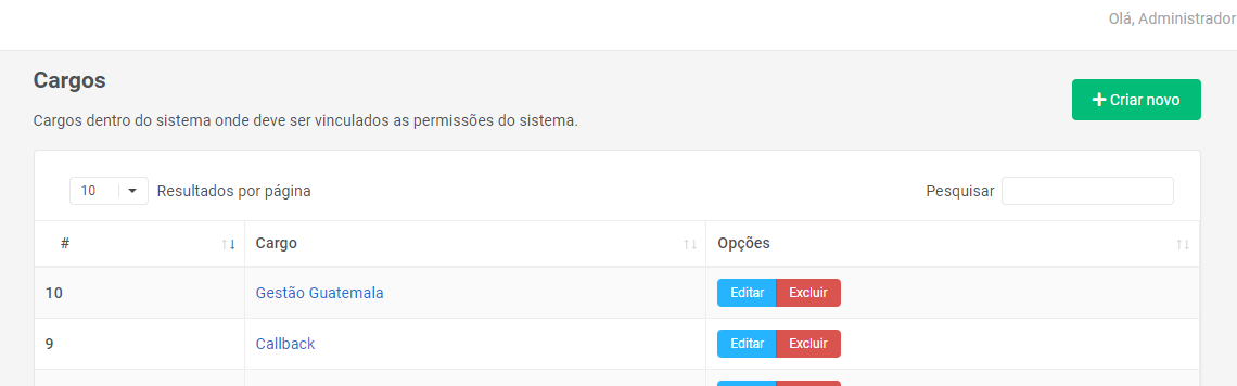 - Permissões (Para acessar a descrição de cada permissão, acesse o menu "Usuários" -> "Permissões")